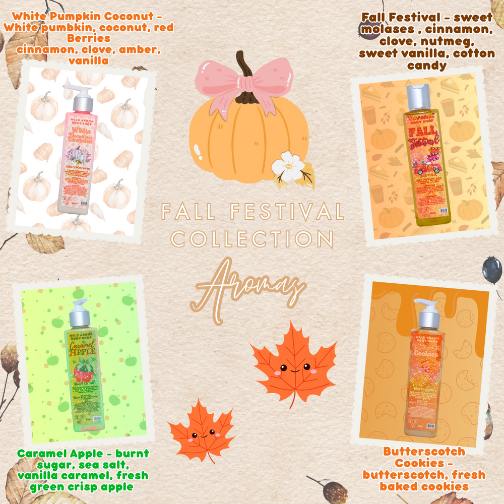 Embrace the festival season with our limited-edition Fall Festival Collection. Infused with sweet and spicy fragrances, each product is designed to leave your skin feeling soft, hydrated, and glowing—all season long.